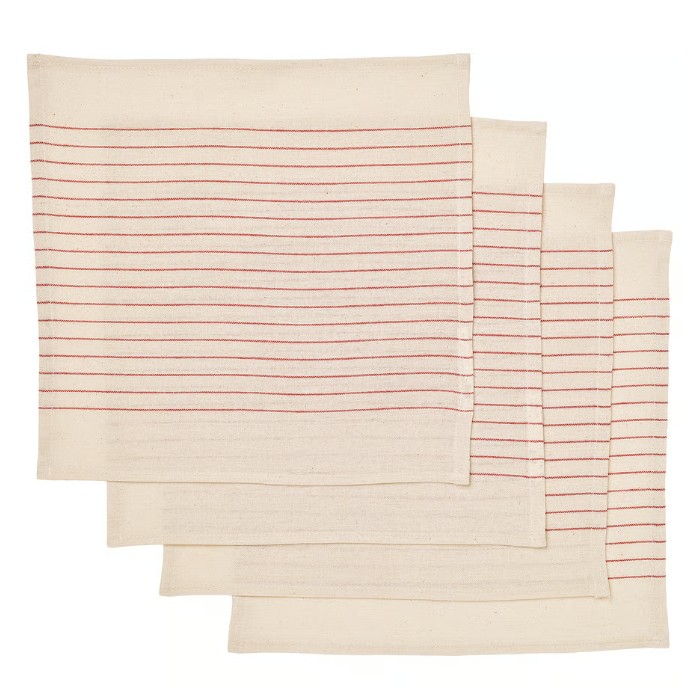 Verfraai uw tafelaankleding met deze stijlvolle en duurzame katoenen servetten. Ze hebben een klassiek streeppatroon en geven een warme, tijdloze charme aan zowel dagelijkse maaltijden als speciale bijeenkomsten. Elk servet is gemaakt van zacht, absorberend materiaal dat gemakkelijk wasbaar is en zijn kwaliteit behoudt.