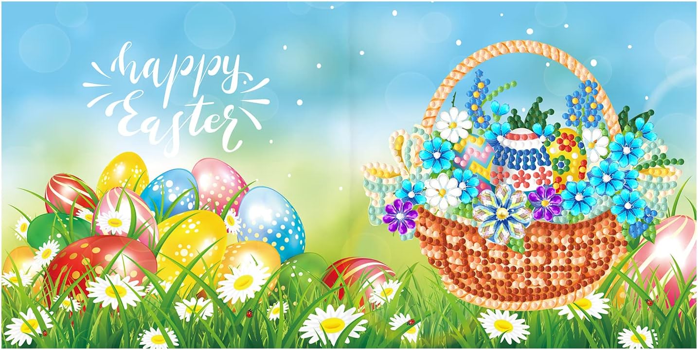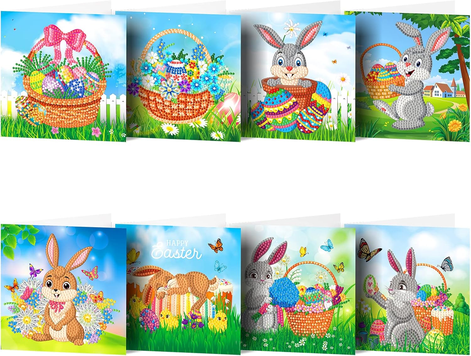 8-pack Diamond Painting dubbele wenskaarten Pasen 15x15cm