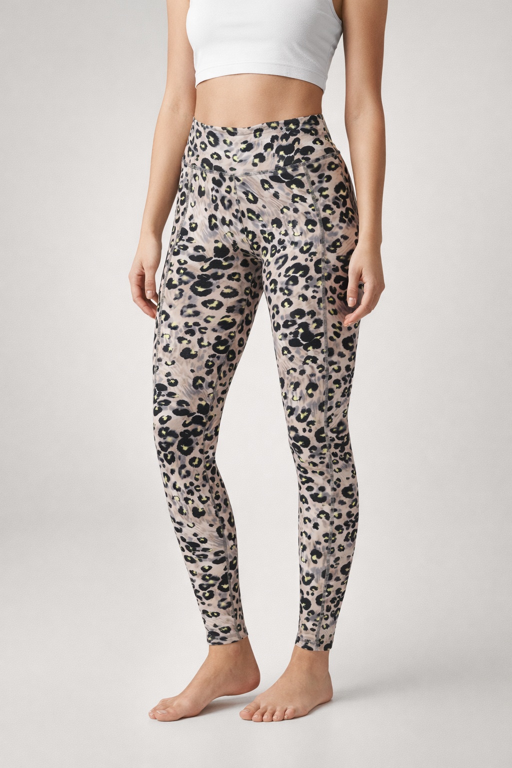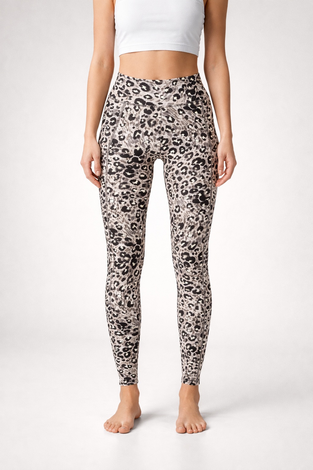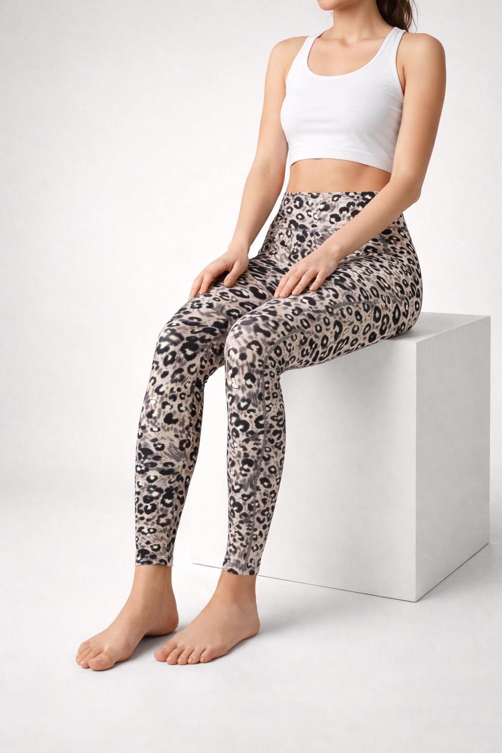Geef je sportkledingcollectie een boost met deze stijlvolle legging met hoge taille en een modern luipaardpatroon in een zachte beige basis met subtiele neonaccenten. De stretchstof is ontworpen voor zowel sportieve prestaties als dagelijks comfort en vormt zich soepel naar het lichaam, terwijl de legging een flatterende en ondersteunende pasvorm behoudt. De brede tailleband biedt lichte compressie en een veilige pasvorm, waardoor deze legging ideaal is voor workouts, yogasessies of een casual athleisure-look.