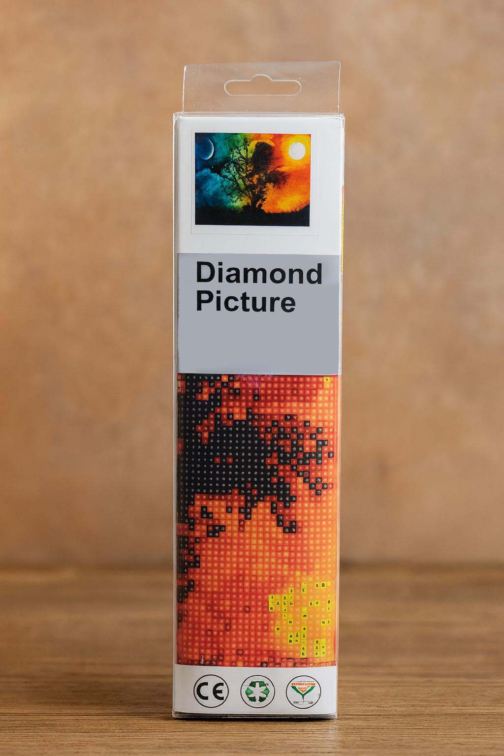 Creëer een prachtig meesterwerk met deze Diamond Painting Kit, met de opvallende afbeelding van een boom die de nachtelijke hemel en de heldere dag scheidt. Aan de ene kant gloeit de diepblauwe nacht met een maansikkel met kalme mysterie, terwijl de andere kant uitbarst in de warme gloed van de zon met vurige oranje en gele tinten. Het krachtige silhouet van de boom verenigt de twee werelden, waardoor dit kunstwerk zowel inspirerend als rustgevend is om naar te kijken.