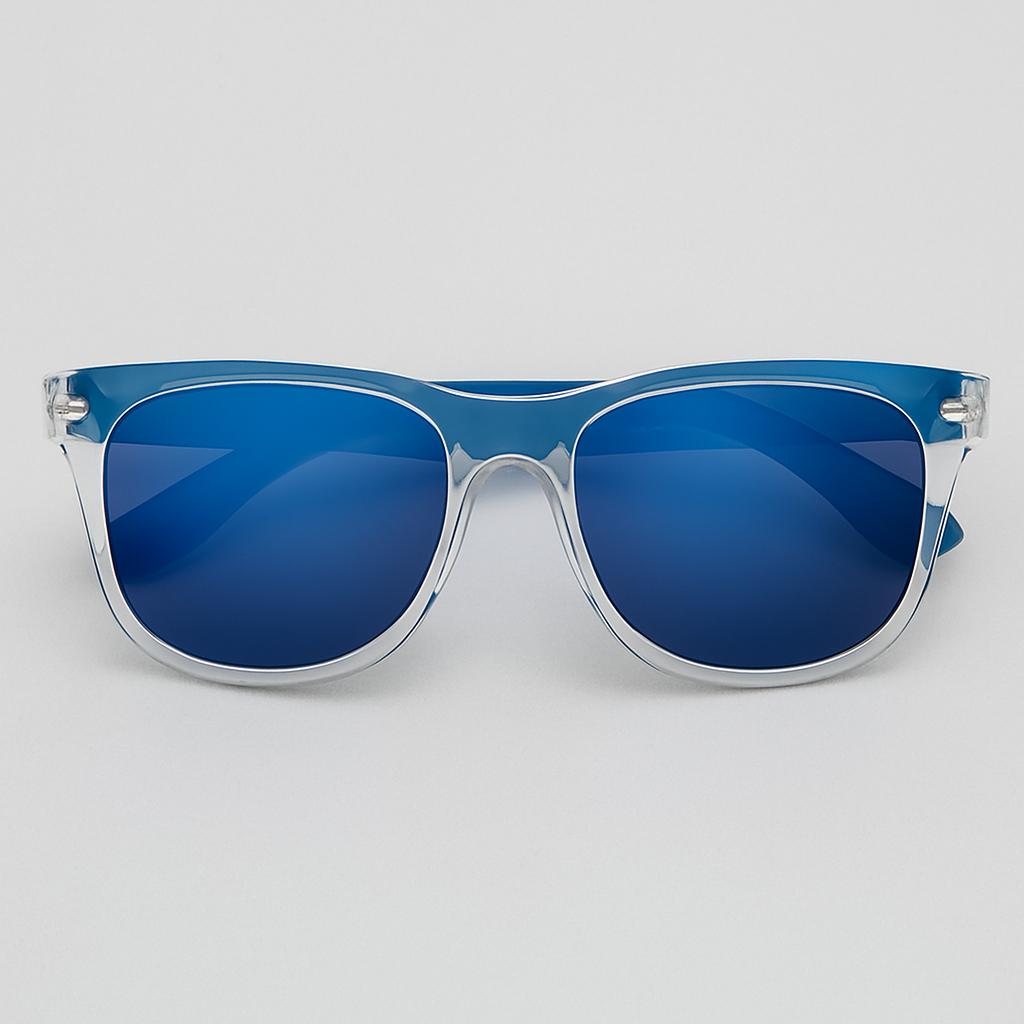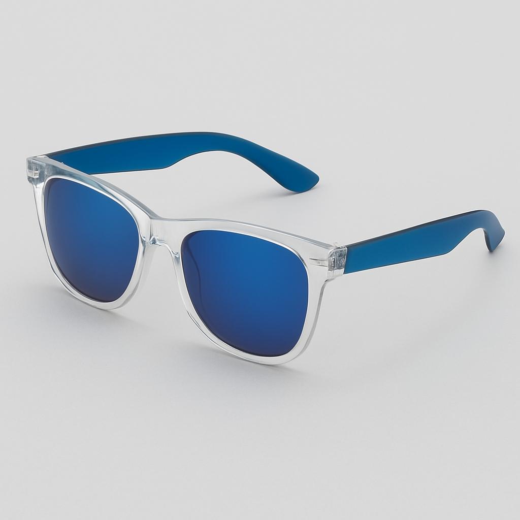 Deze zonnebril is gemaakt met een lichtgewicht, duurzaam transparant montuur en comfortabele pootjes in een levendige blauwe afwerking, waardoor hij de hele dag gedragen kan worden. De spiegelglazen zien er niet alleen opvallend uit, maar bieden ook UV400-bescherming en beschermen je ogen tegen schadelijke UVA- en UVB-stralen.