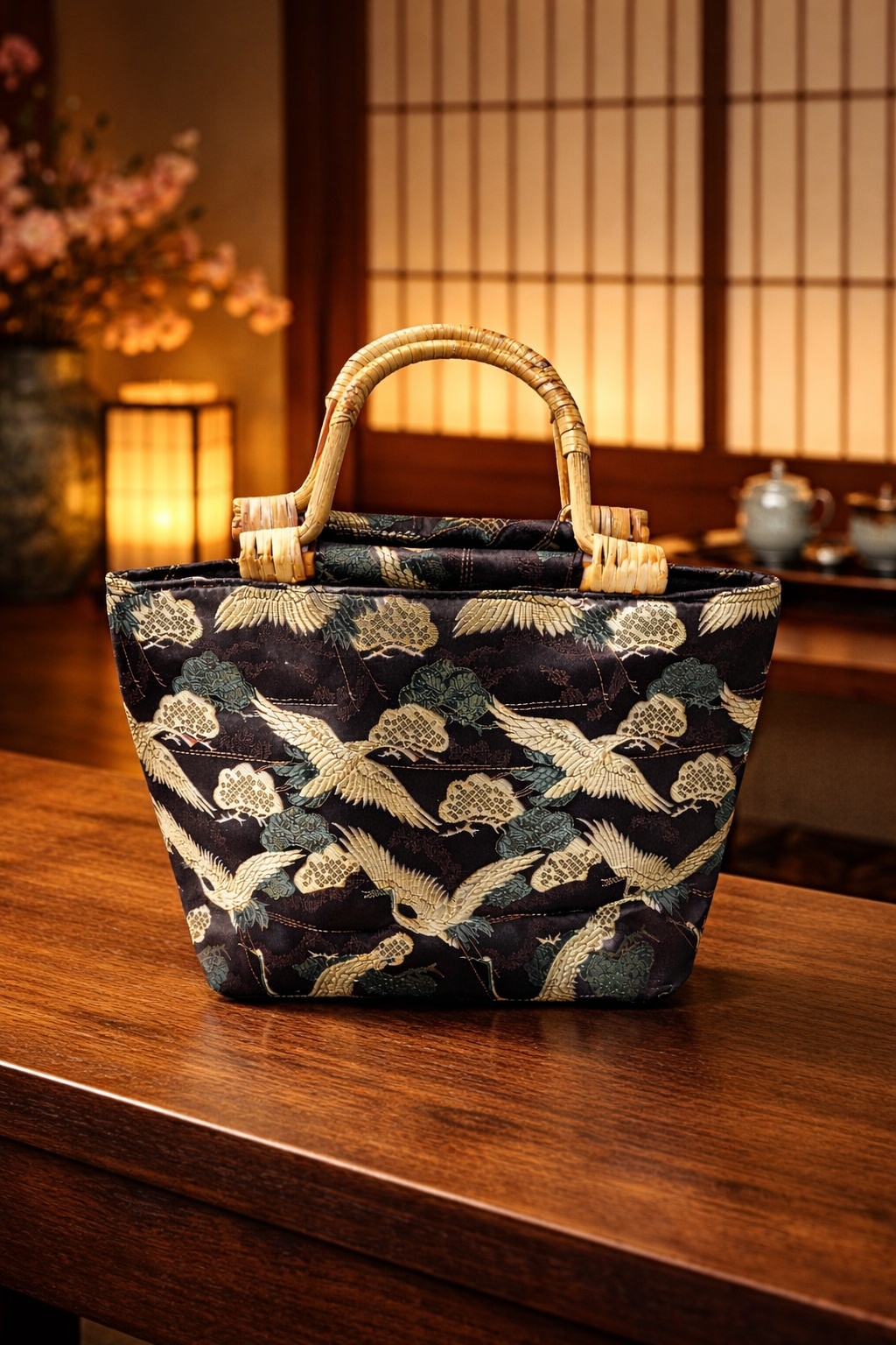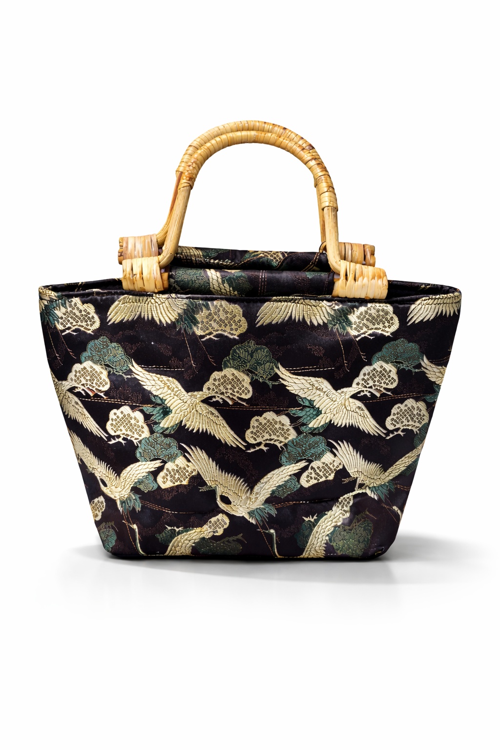 Elegante Mihella handtassen met kraanvogelmotief en bamboe-look handvatten