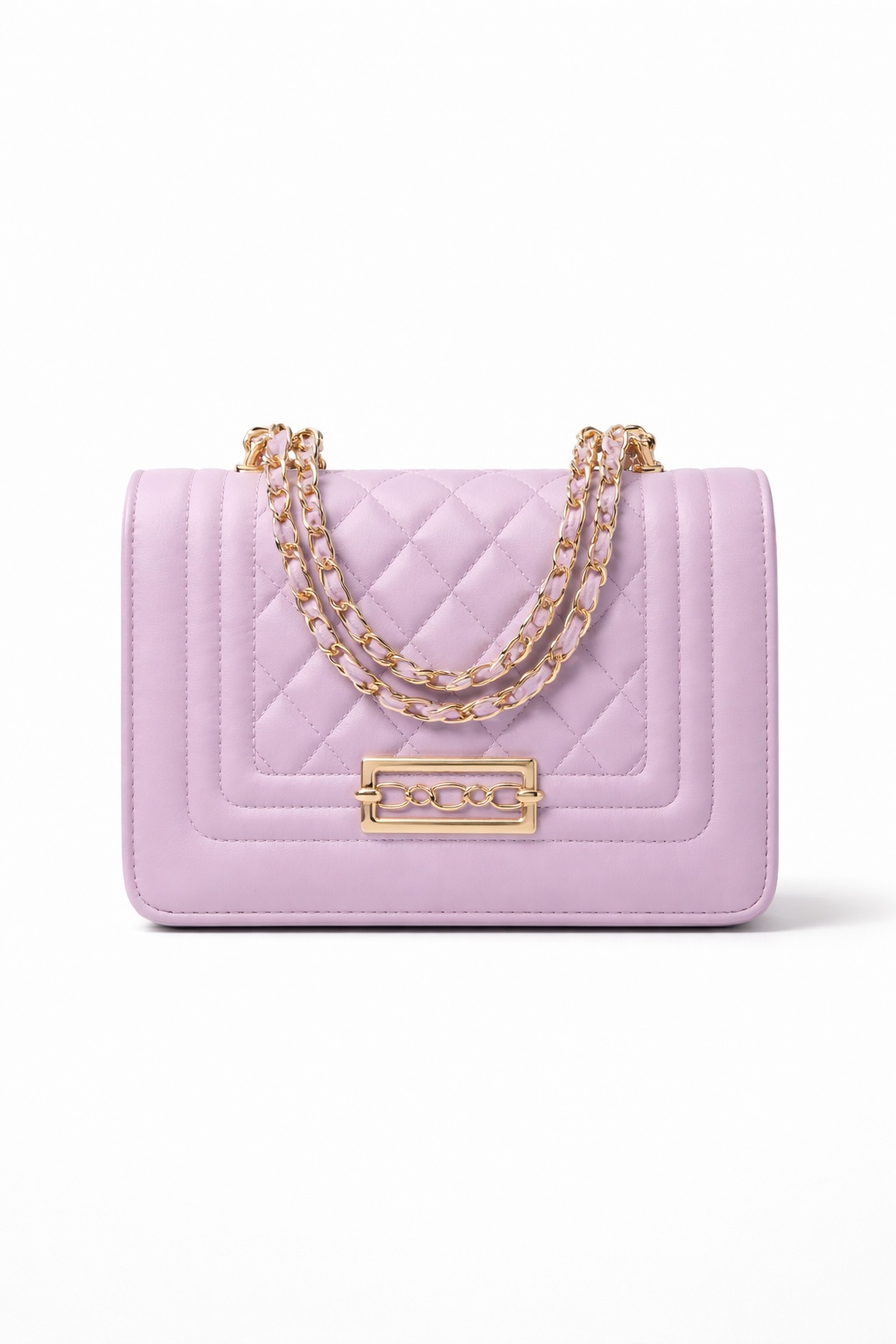 Deze gestructureerde handtas is gemaakt van glad imitatieleer en heeft een verfijnd ruitvormig stiksel op de klep aan de voorzijde, aangevuld met strakke gestikte details. De zachte pastel lavendelkleur geeft een vrouwelijke maar veelzijdige touch, waardoor de tas perfect is voor zowel overdag als ’s avonds.