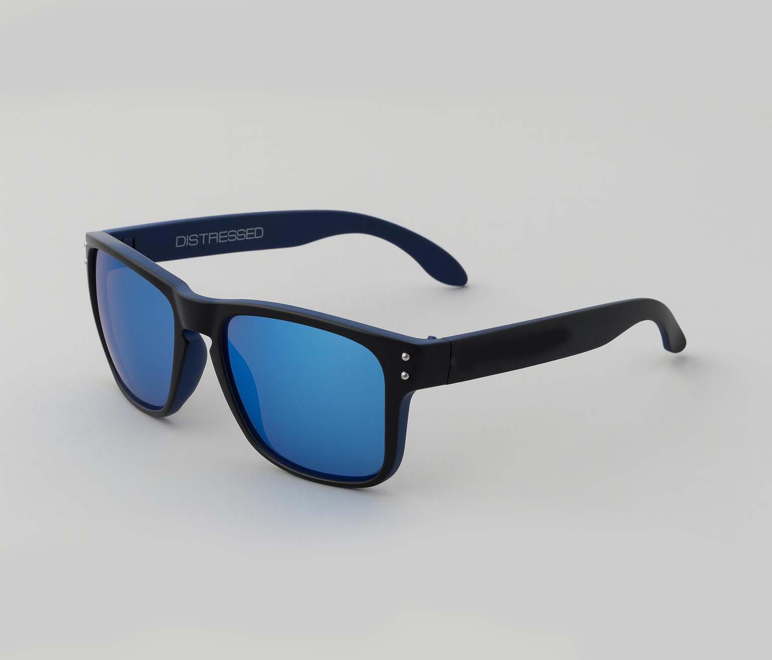 Black/blue ‘Distressed’ sunglasses with mirror lenses 2220-25