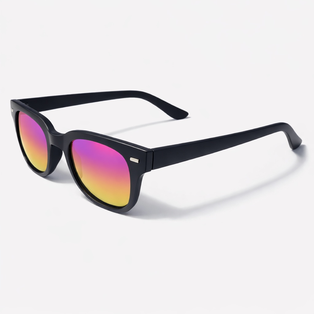 Designed for timeless style and everyday comfort, these sunglasses feature a sleek matte black frame paired with striking gradient lenses. The lenses blend rich purple tones into warm yellow hues, creating a modern, eye-catching look while maintaining excellent visual clarity.