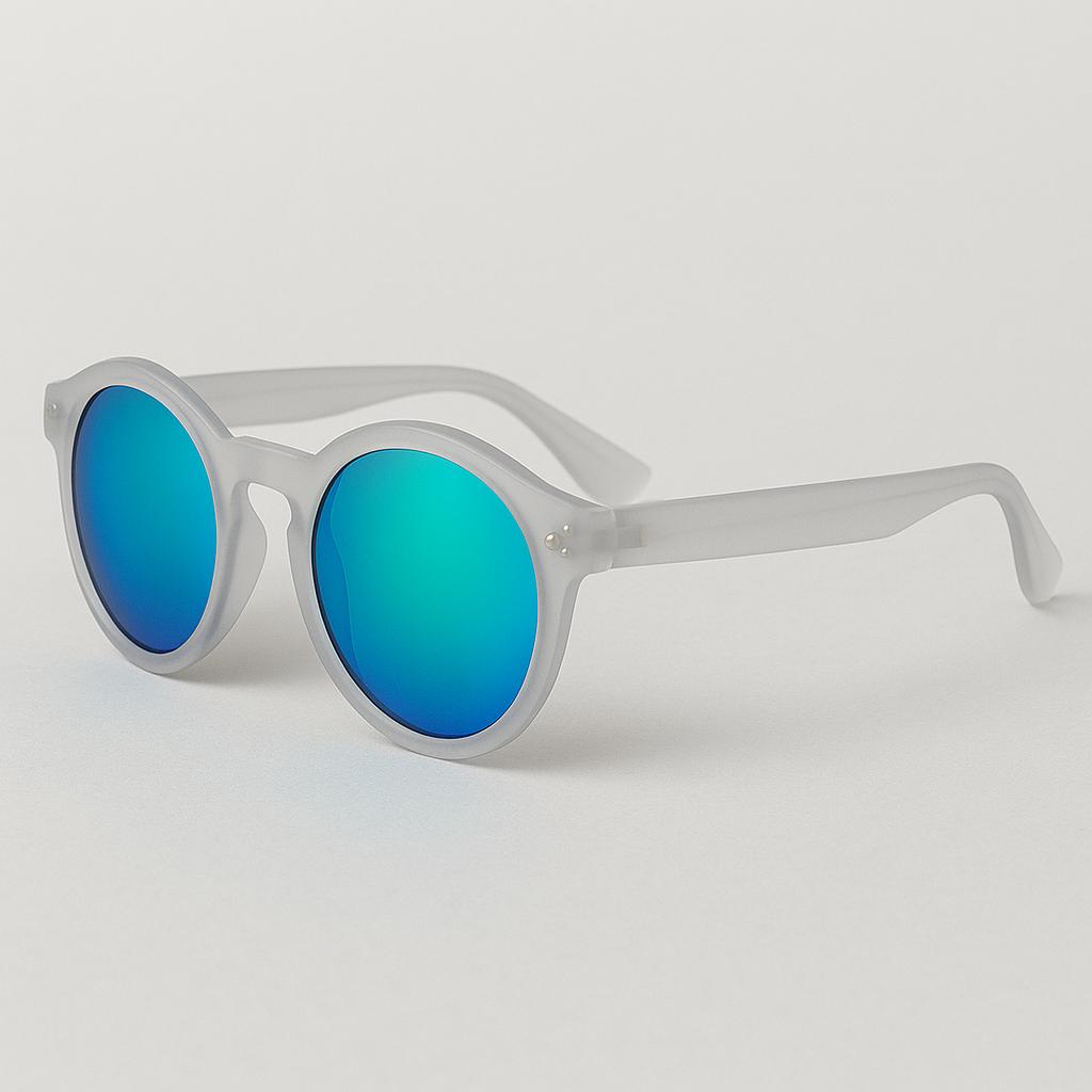 Elevate your style with these modern frosted-frame sunglasses, designed for those who appreciate a clean aesthetic and standout details. The lightweight matte frame offers a soft, frosted finish that feels as good as it looks, while the bold blue–green mirrored lenses create a striking visual contrast.