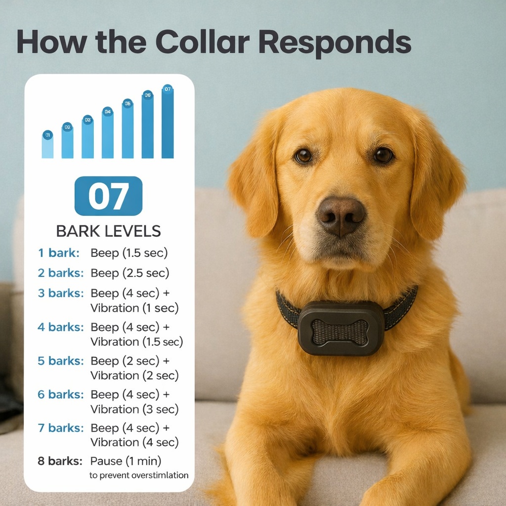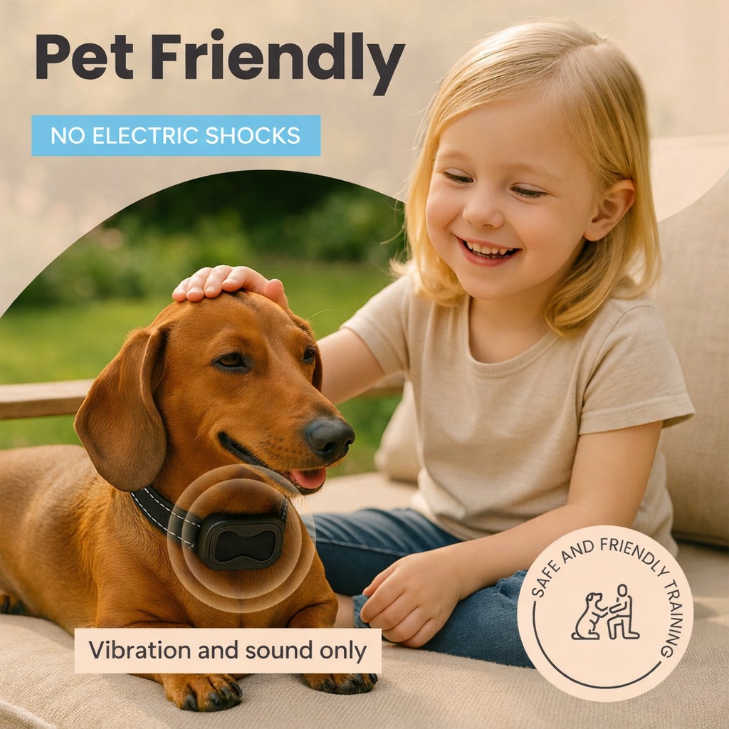The Pawesome anti-bark collar helps your dog gently and safely break the habit of excessive barking. The collar doesn’t use electric shocks, but works exclusively with gentle beeps and vibrations. This makes it a pet-friendly solution suitable for daily use. The intensity of the correction gradually increases if your dog continues to bark, and it automatically stops after seven times to prevent overstimulation.