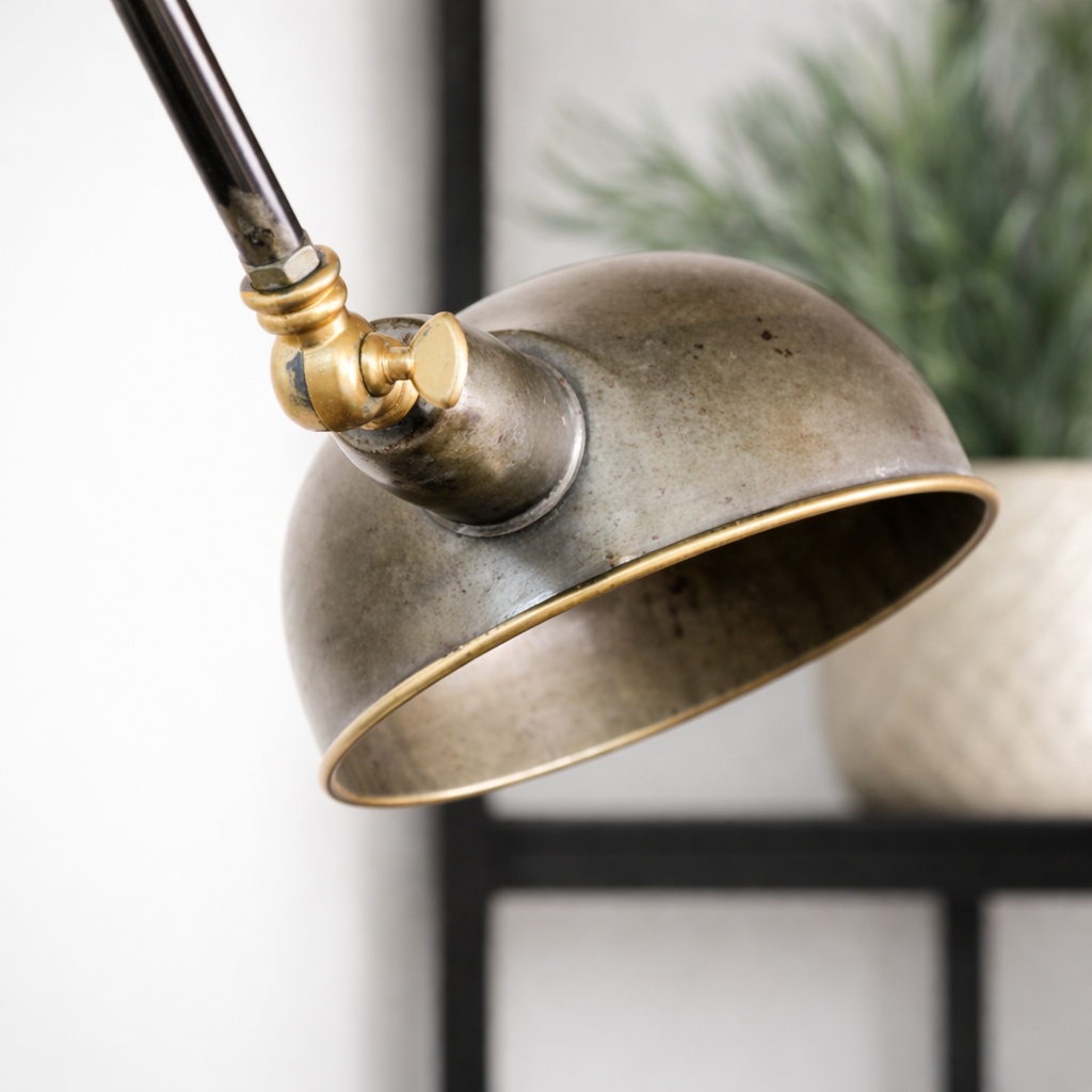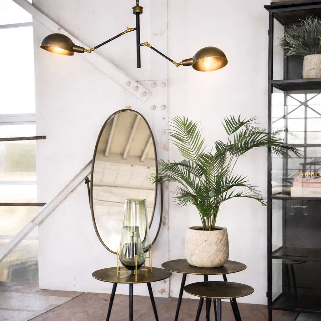 Bring character and warmth into your interior with this elegant industrial double ceiling lamp. Designed with two adjustable arms and refined antique brass shades, this statement piece combines functionality with timeless design.