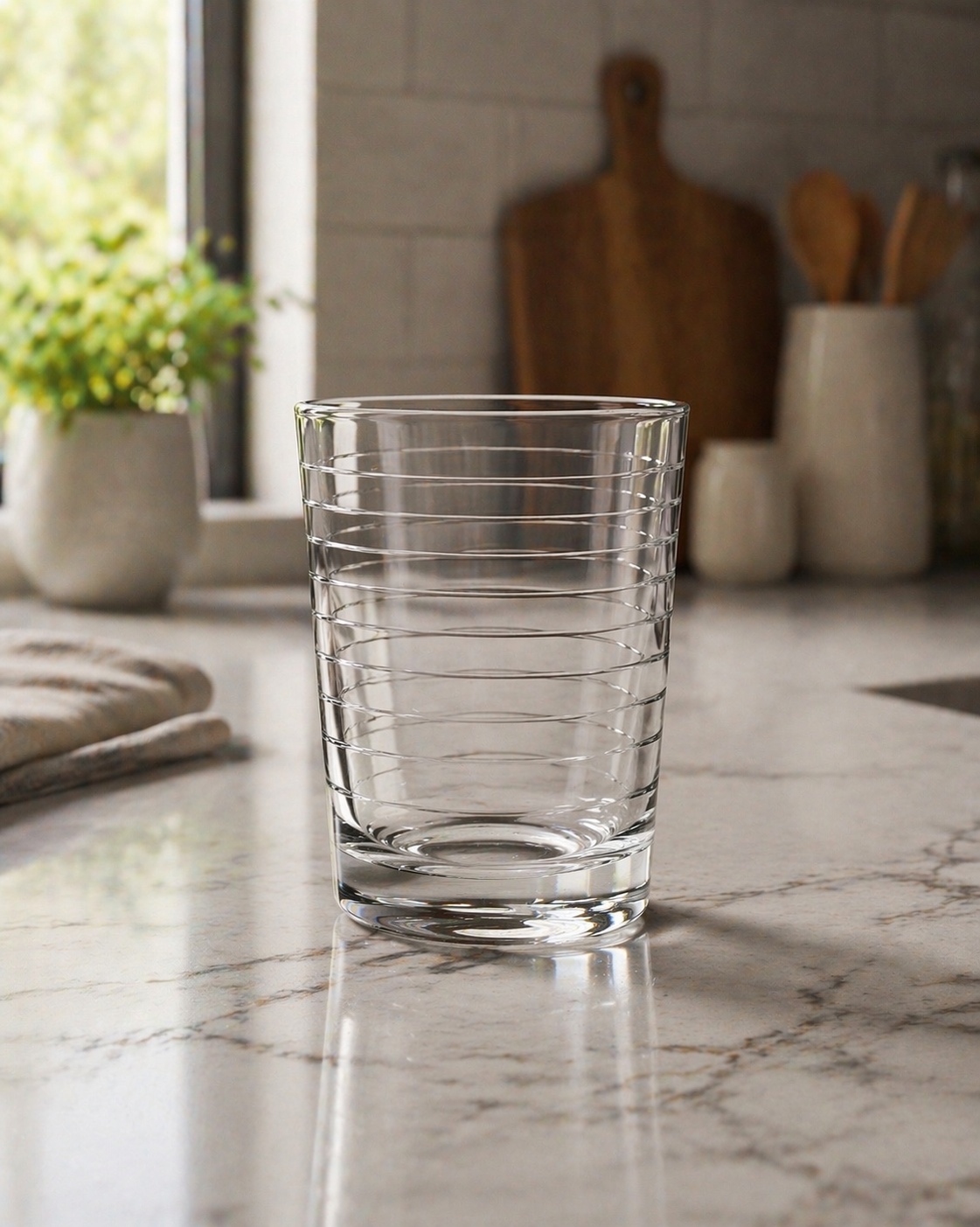 Het Tavola-glas is gemaakt van helder, hoogwaardig glas en biedt uitstekende transparantie, waardoor uw drankjes prachtig tot hun recht komen, of het nu gaat om vers sap in de ochtend, bruisend water bij de lunch of een heerlijke cocktail in de avond. Het subtiele ringontwerp voegt niet alleen een aantrekkelijk uiterlijk toe, maar zorgt ook voor een comfortabele grip.