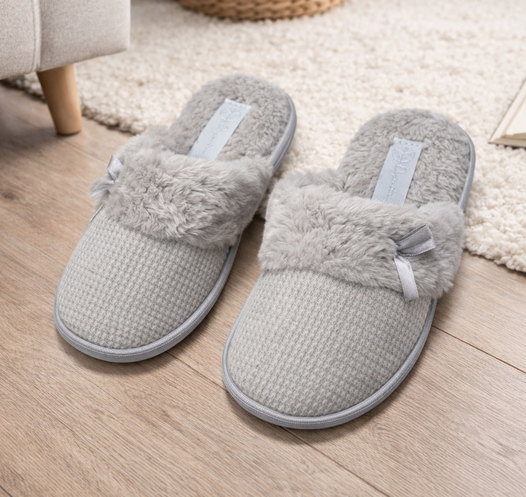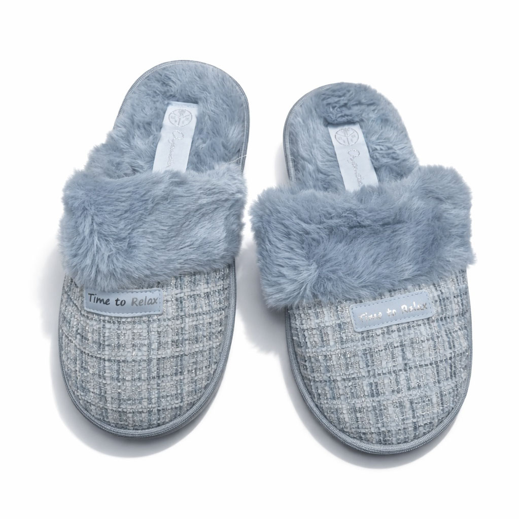 Geniet elke dag van comfort met deze knusse pantoffels. Ontworpen met een zacht, gestructureerd bovenwerk en een warme voering van imitatiebont die zich zachtjes om uw voeten wikkelt. Lichtgewicht, comfortabel en gemakkelijk aan te trekken, perfect om thuis te ontspannen in elk seizoen. Verkrijgbaar in grijs en lichtblauw.