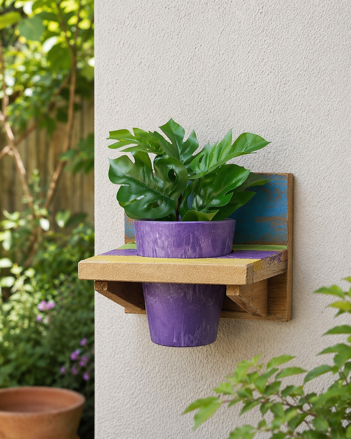 De duurzame Artstone pot heeft een tijdloos design en is geschikt voor diverse kleine planten, waardoor u uw interieur gemakkelijk kunt opfrissen met seizoensgroen of kruiden. Samen vormen het rek en de pot een compact maar opvallend wandelement dat warmte en karakter toevoegt aan elke omgeving.