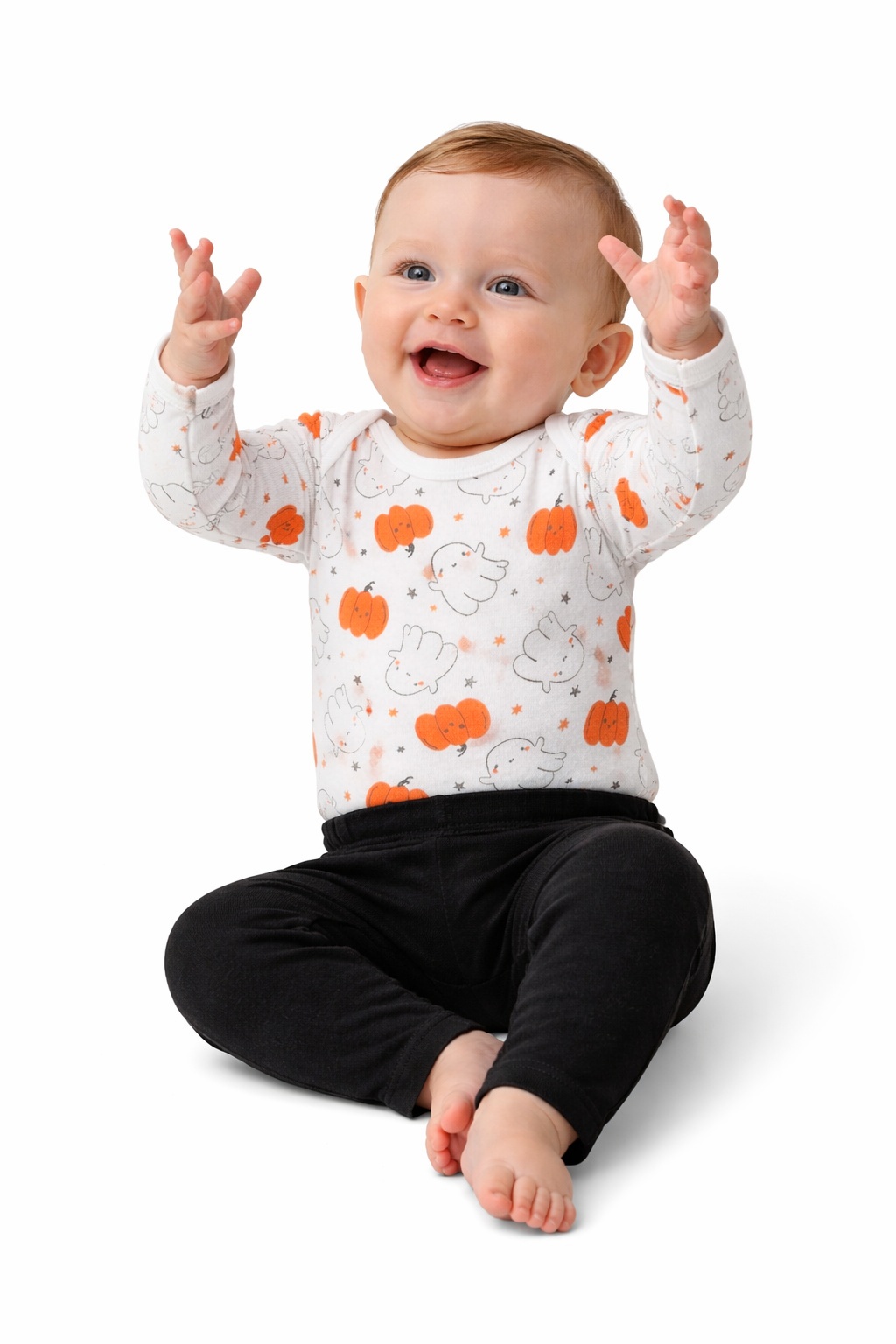Kleed je kleintje in feestelijke comfort met deze schattige baby Halloween outfit sets. Elke set bestaat uit een zachte romper met lange mouwen en een bijpassende legging, gemaakt van zacht stretchkatoen voor een comfortabele pasvorm en optimale bewegingsvrijheid.
