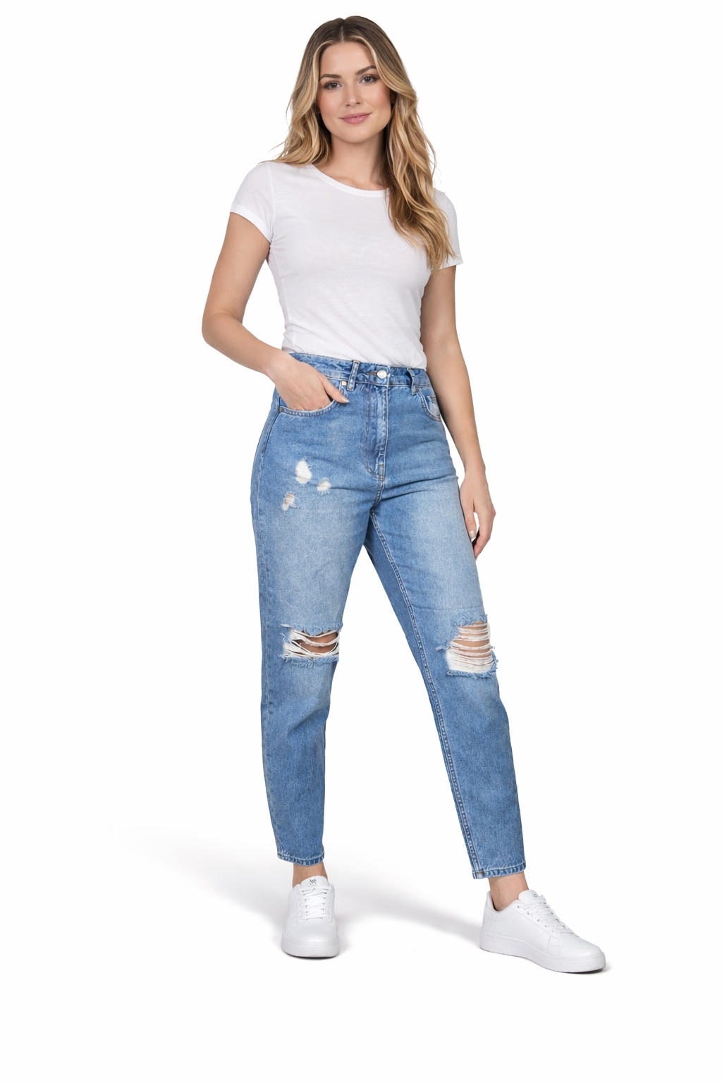 De Karo Kauer Mid Blue Ripped Mom Jeans bieden een perfecte mix van vintage charme en moderne edge. Deze jeans zijn ontworpen met een hoge taille en relaxte pasvorm en hebben stijlvol geplaatste scheuren die een gedurfde, verweerde look toevoegen. De mid-blauwe wassing versterkt hun klassieke aantrekkingskracht, waardoor ze een veelzijdige optie zijn voor casual outfits. Deze mom jeans zijn comfortabel en moeiteloos cool en zijn perfect om te combineren met alles van aansluitende tops tot oversized truien, waardoor een trendy, relaxte sfeer ontstaat die ideaal is voor dagelijks gebruik.