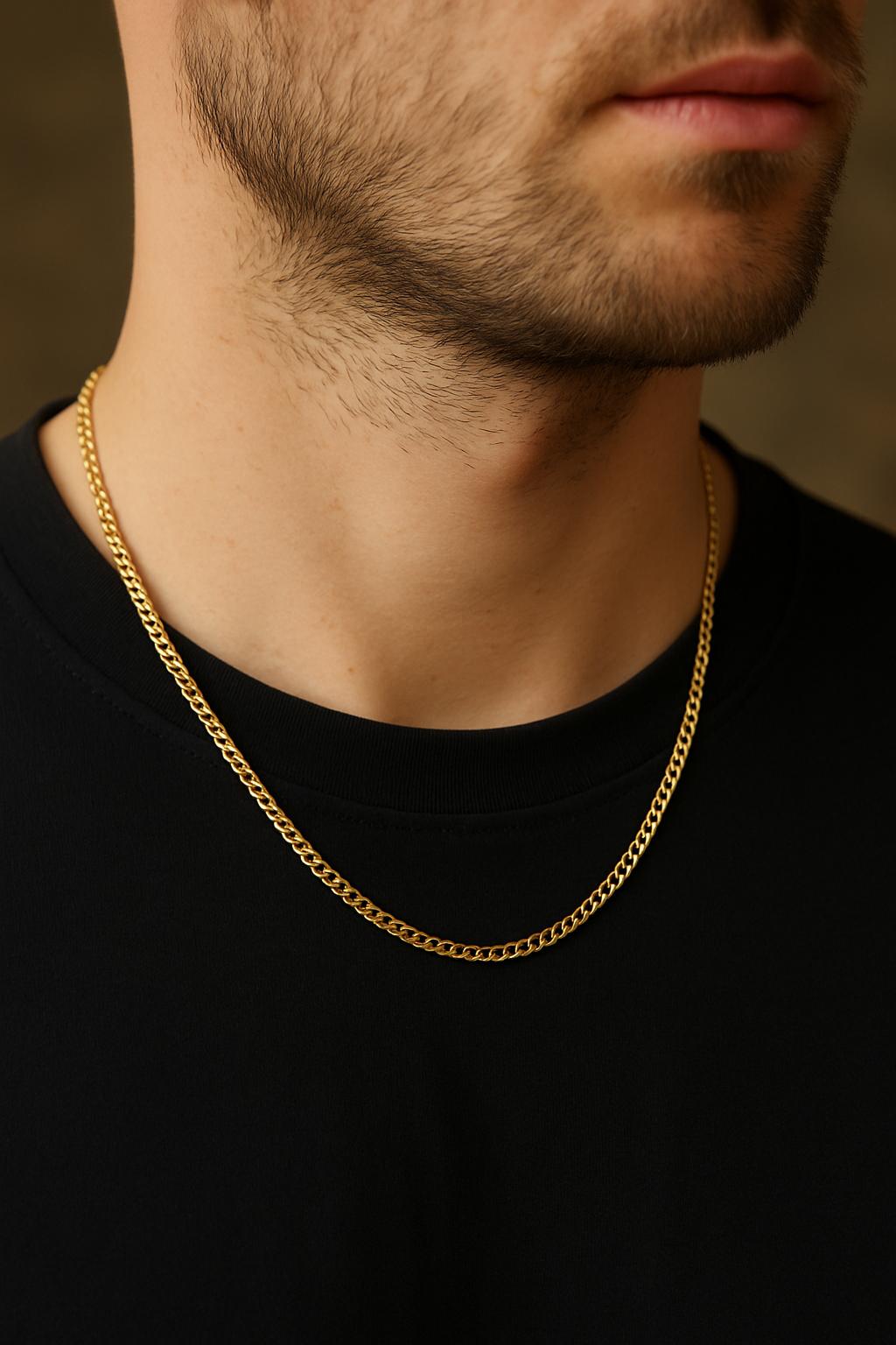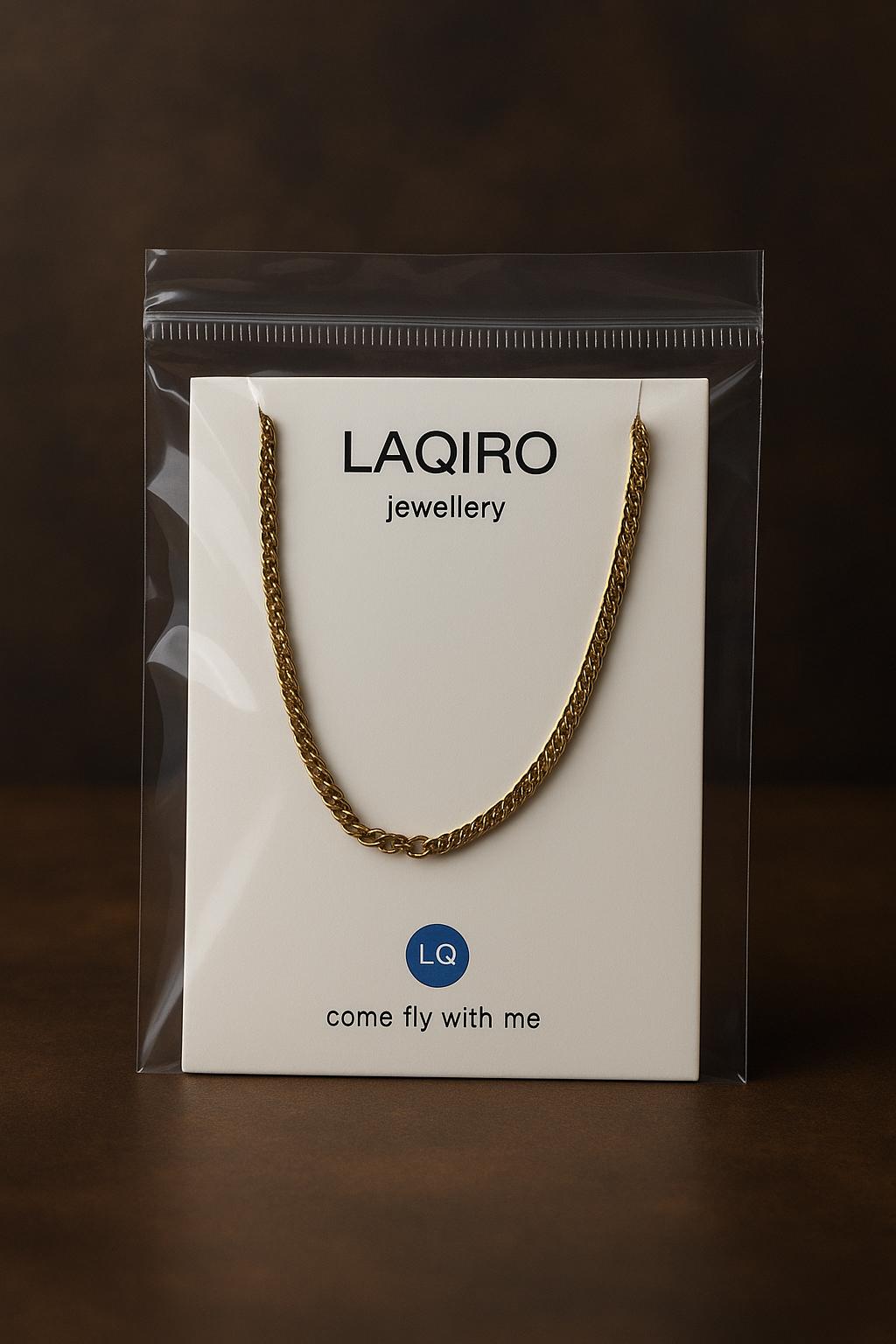 Geef elke look een verfijnde touch met deze elegante goudkleurige schakelketting van Laqiro. De ketting is ontworpen met een soepele, strak gevlochten schakelketting en heeft een gepolijste afwerking die het licht prachtig vangt zonder al te opzichtig te zijn.