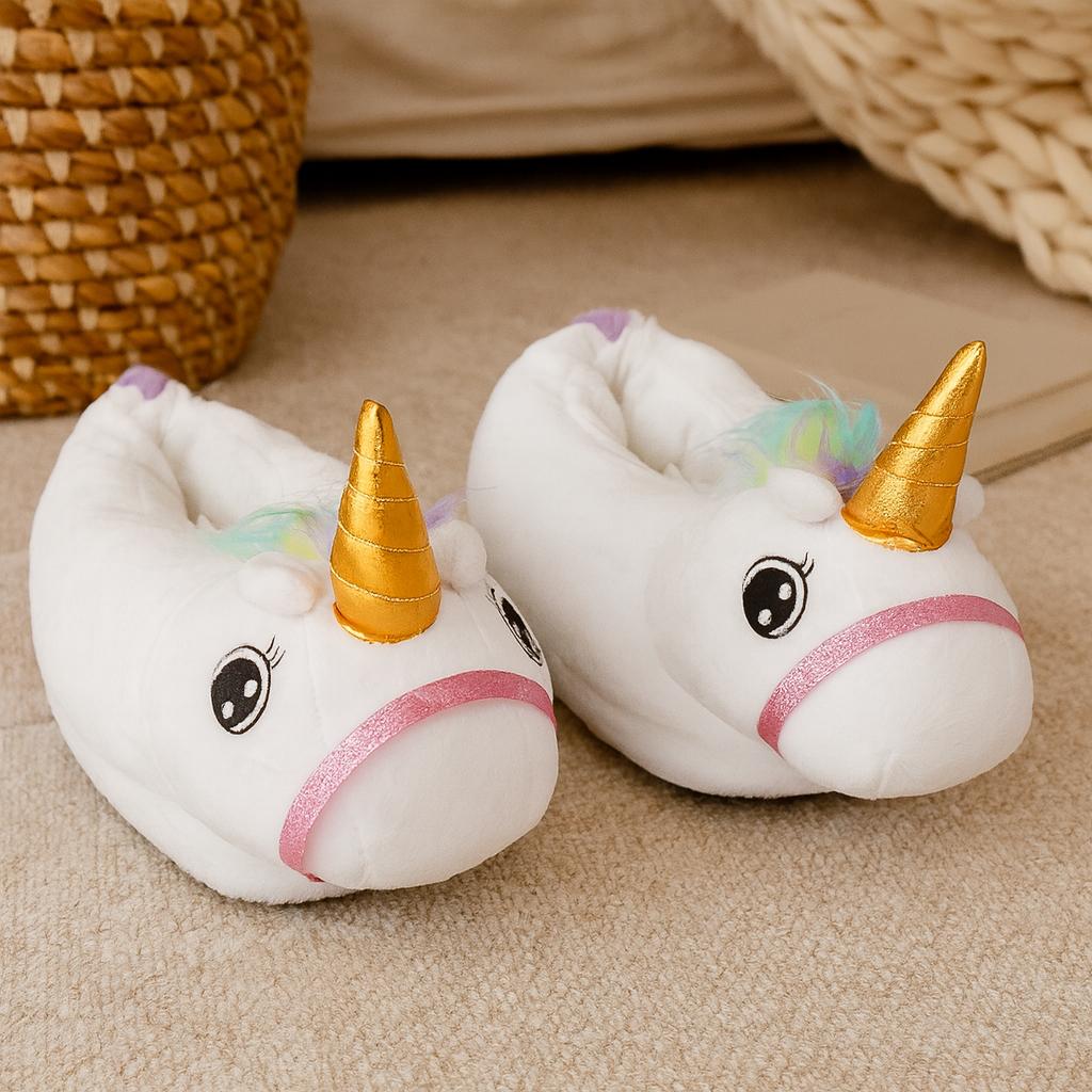 Glijd in puur comfort en een vleugje magie met deze comfortabele Unicorn Plush Pantoffels. Ze omhullen je voeten met warmte en voegen een speelse, dromerige charme toe aan je dagelijkse momenten. Elke pantoffel heeft een schattig eenhoorngezicht met een glinsterende bronzen hoorn, pastelkleurige manen en geborduurde details die ze even betoverend als comfortabel maken. De zachte binnenkant biedt wolkachtige zachtheid, terwijl de antislipzool zorgt voor stevige stappen op elke ondergrond.