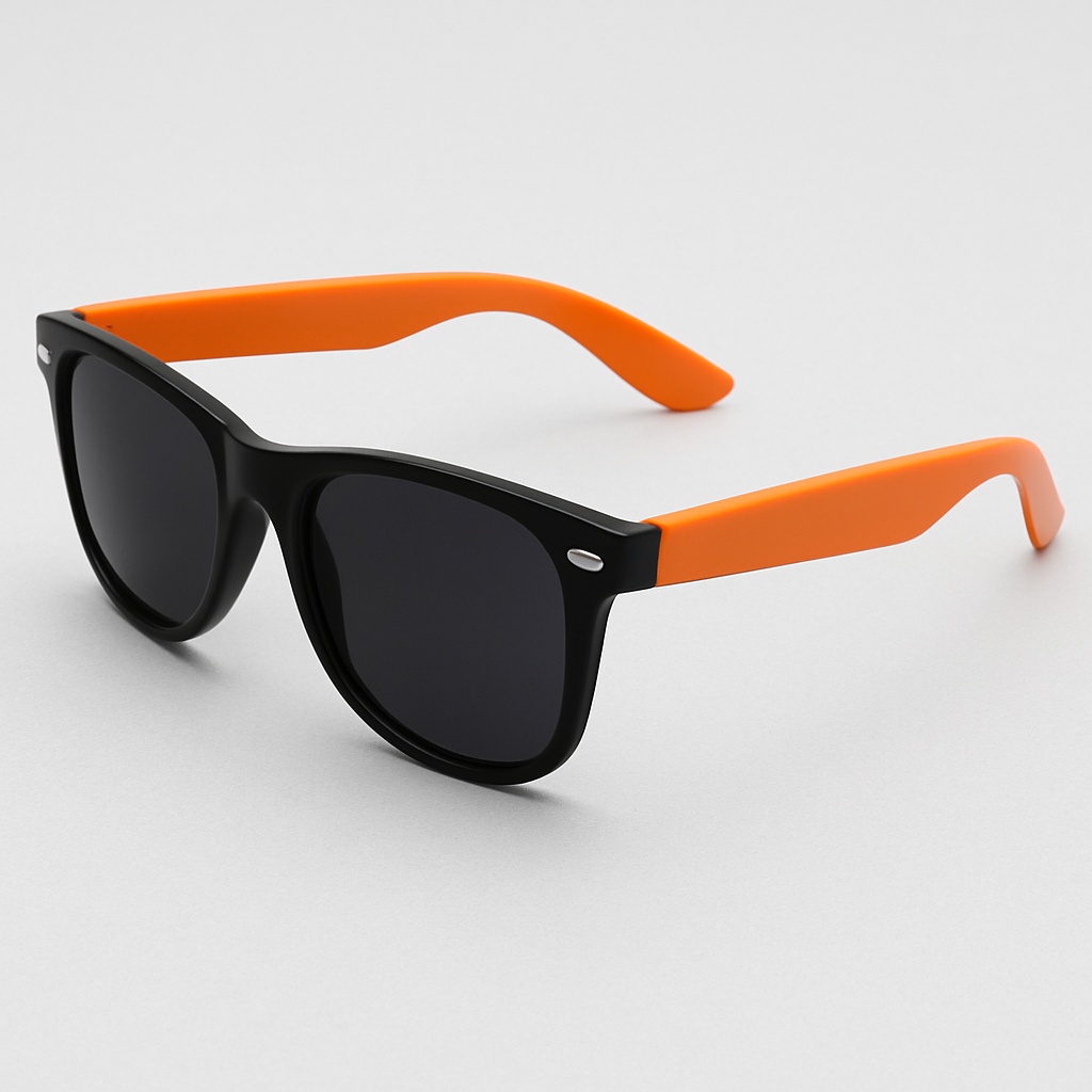 Maak een statement met de Distressed zonnebril. Met een strak, glanzend zwart montuur en feloranje pootjes combineert deze zonnebril een tijdloze stijl met een moderne twist.