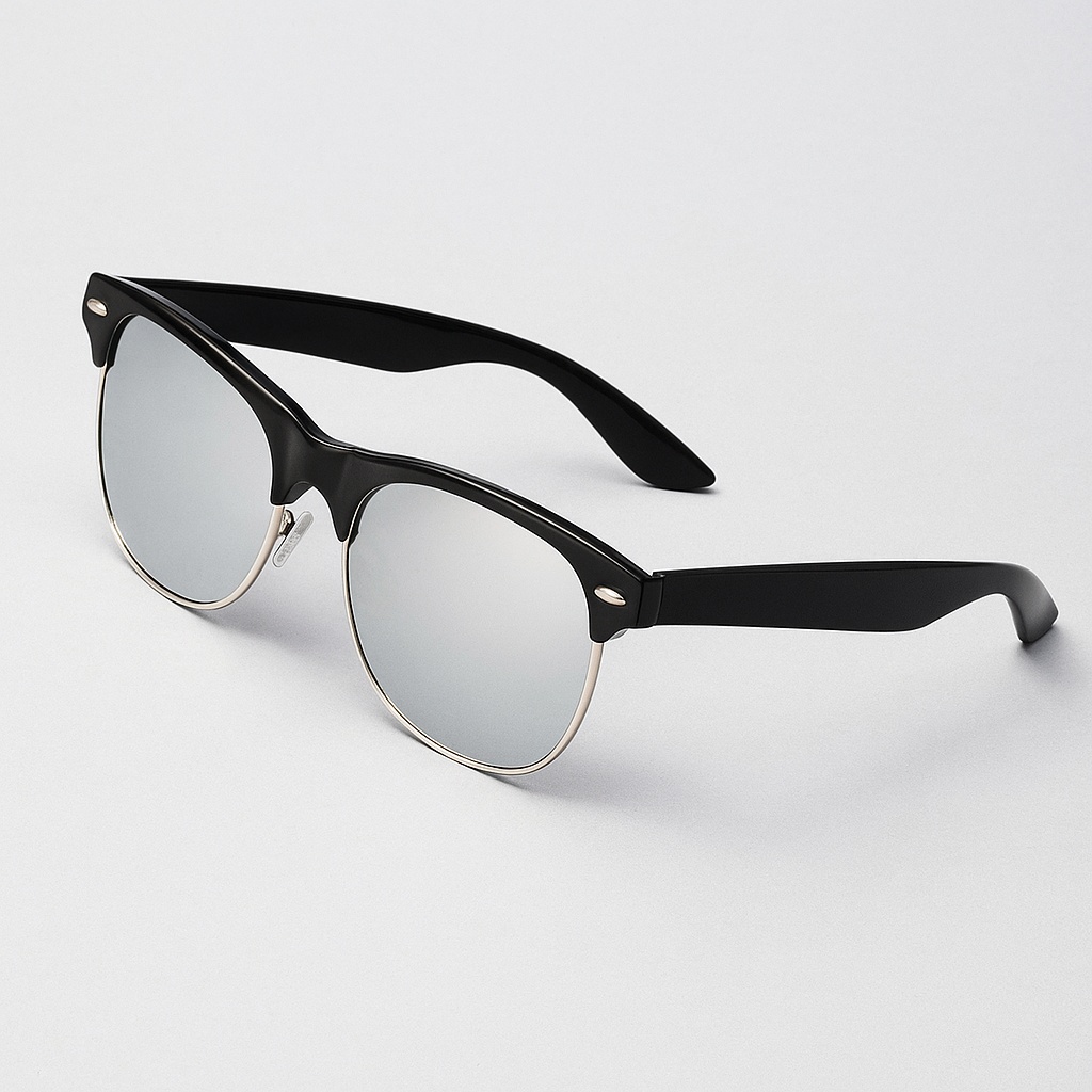 Verfijn je dagelijkse look met deze tijdloze Clubmaster zonnebril, waar vintage charme en moderne verfijning samenkomen. Met een opvallend zwart montuur gecombineerd met strakke metallic accenten, zorgen deze zonnebrillen voor een verfijnde maar toch moeiteloos coole esthetiek. De gespiegelde glazen bieden 100% uv-bescherming en voegen een vleugje moderne edge toe, perfect voor zonnige dagen in de stad of weekenduitstapjes.