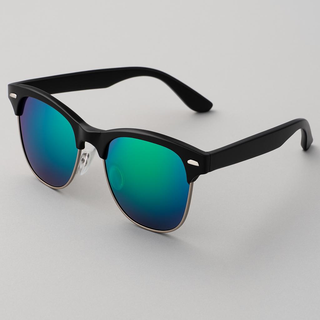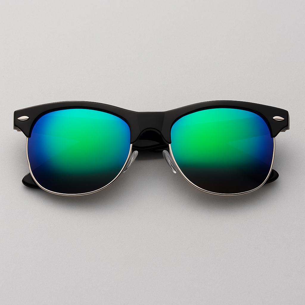 Maak een statement met de Classic Clubmaster Mirrored zonnebril, waar vintage charme en modern vakmanschap samenkomen. Met een opvallend wenkbrauwlijn montuur met een glanzend zwarte bovenrand en strakke metalen onderrand, belichaamt deze zonnebril tijdloze verfijning. De groen-blauwe spiegelglazen geven een eigentijdse twist en bieden zowel stijl als functionaliteit met volledige UV400-bescherming voor optimale oogveiligheid.